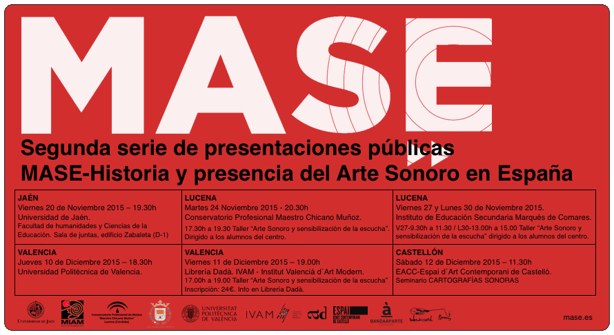 17.30h a 19.30 Taller “Arte Sonoro y sensibilización de la escucha”. Dirigido a los alumnos del centro.