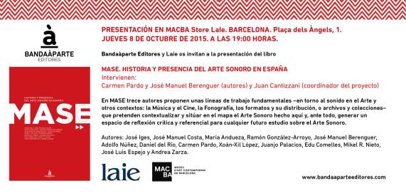 Intervienen: Antonio de Egipto y Marga Suarez (Director Bandaàparte Ediciones) y Juan Cantizzani (Coordinación-dinamización proyecto y publicación MASE), Ramon Gonzalez-Arroyo (Autor publicación MASE), José Manuel Costa (Autor y comisariado proyecto MASE) y José Luis Espejo (Autor y comisariado proyecto MASE).